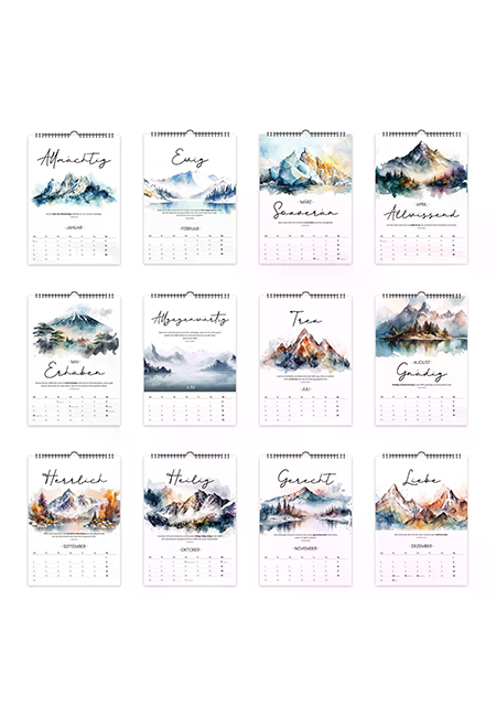 - Wandkalender: A3, 250g Papier, hochwertiger Qualitätsdruck matt, Metallspirale als Wire-O-Bindung