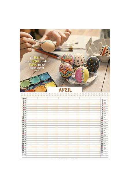 Spritziger XXL Familien-Terminer - mit 7 Spalten