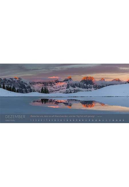 Entdecke die majestätische Schönheit der Schöpfung mit dem Riesenpanoramakalender "Ewigkeit im Herzen 2026"! Die hochwertigen Fotografien zeigen beeindruckende Landschaften – von majestätischen Bergen über weite Wüsten bis hin zu ruhigen Meeren – und sie laden dich ein, über die Allmacht Gottes zu staunen. Jedes Bild im Panoramaformat vermittelt ein Gefühl der Weite und inneren Ruhe, während inspirierende Bibelverse die beeindruckenden Motive begleiten.