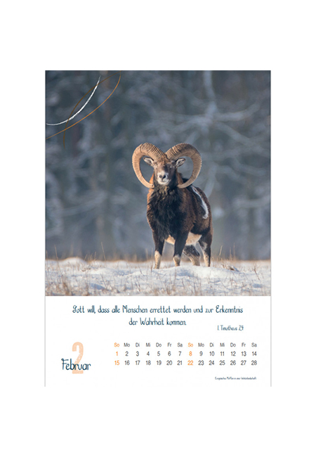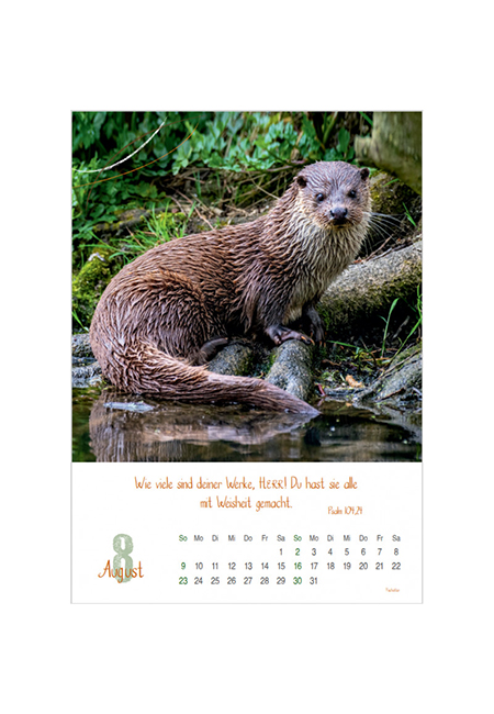Zwölf hervorragende Naturfotografien gewähren Einblick in Gottes Schöpfung. Die interessanten Tieraufnahmen machen einfach Freude. Ansprechender Bibelvers und übersichtliches Kalendarium. Ein schönes Geschenk für Naturliebhaber.